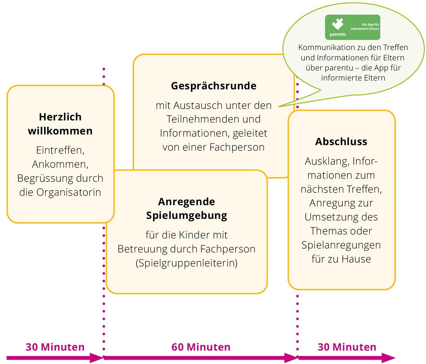 Begleitend zu den regelmäßigen Eltern-Kind-Gruppentreffen werden ergänzende Elternbildungsveranstaltungen organisiert.