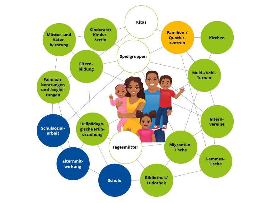 - Eltern werden in den Familien- und Quartierzentren angesprochen.